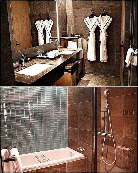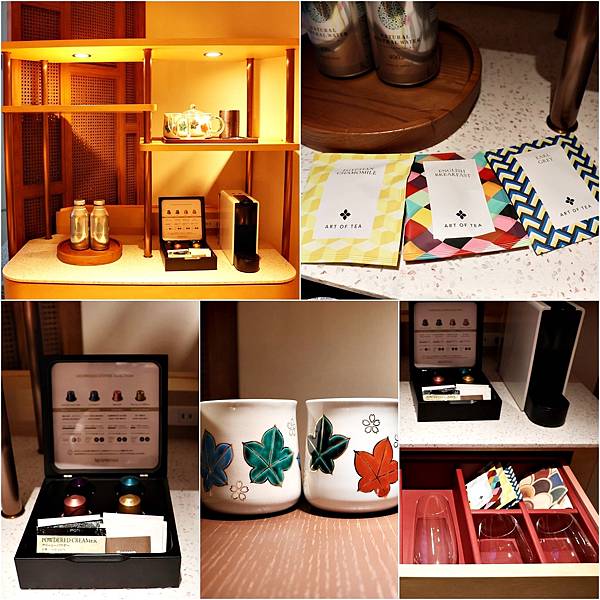 另外從衛浴設備和小吧台上的精緻餐具、膠囊咖啡、上質茶包等都可以看出飯店的待客之道,相信今晚會有好夢跟著一起入睡的...