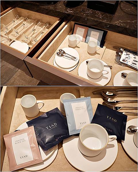 在打開抽屜後又被TIAD自家品牌的各種茶包驚喜到,感覺在房間裡就可以度過一個美好的下午茶或晚茶時光。對了!TIAD是Tomorrow is Another Day的意思,果然住在這裡的每一天都是在迎接美好全新的明天啊~~~