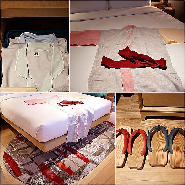 沒想到飯店的浴衣如此可愛,舒適的睡衣也有,踏上小地毯宛如漫步在庭園裡佈滿山茶花的小徑上,真是別有用心!