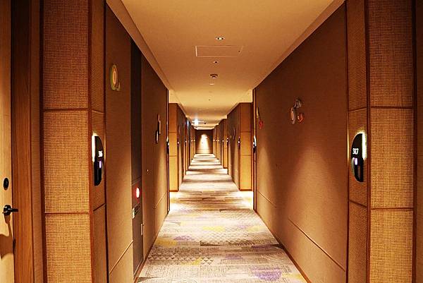接著在通往客房的走廊上遇到了仿照有樂苑國寶茶室「如庵」的台階與小徑之地毯,其靈感來自犬山的四季,從冬季雪景到秋日落葉...