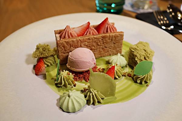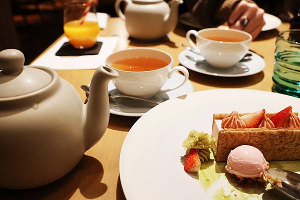 最後在選擇飯後飲料時,服務人員唸了好多飲料名稱,當我聽到當地限定的犬山紅茶時,就是它了。在草莓和開心果千層酥拼盤的陪伴下,正好為今晚獨特的餐宴畫下了一個完美的句點,大家都吃得非常滿足。