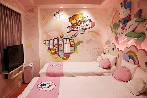 他們竟然有超級夢幻可愛的HOLLO KITTY房型,處處都可以看到HOLLO KITTY的可愛設計,還附上相關伴手禮~HOLLO KITTY小玩偶、小手提袋和手帕都可以帶回家喔!